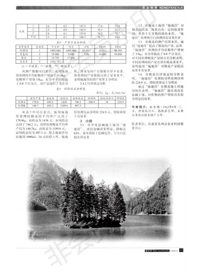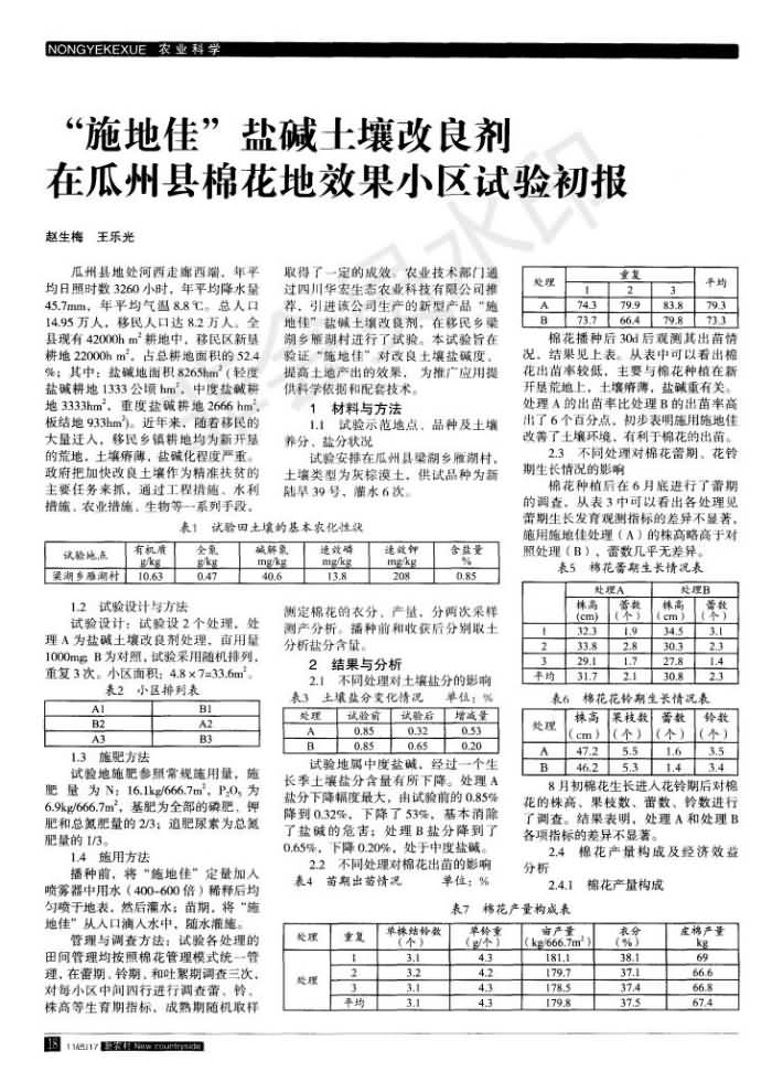 “施地佳”盐碱泥土改进剂在瓜州县棉花地成效幼区试验初报