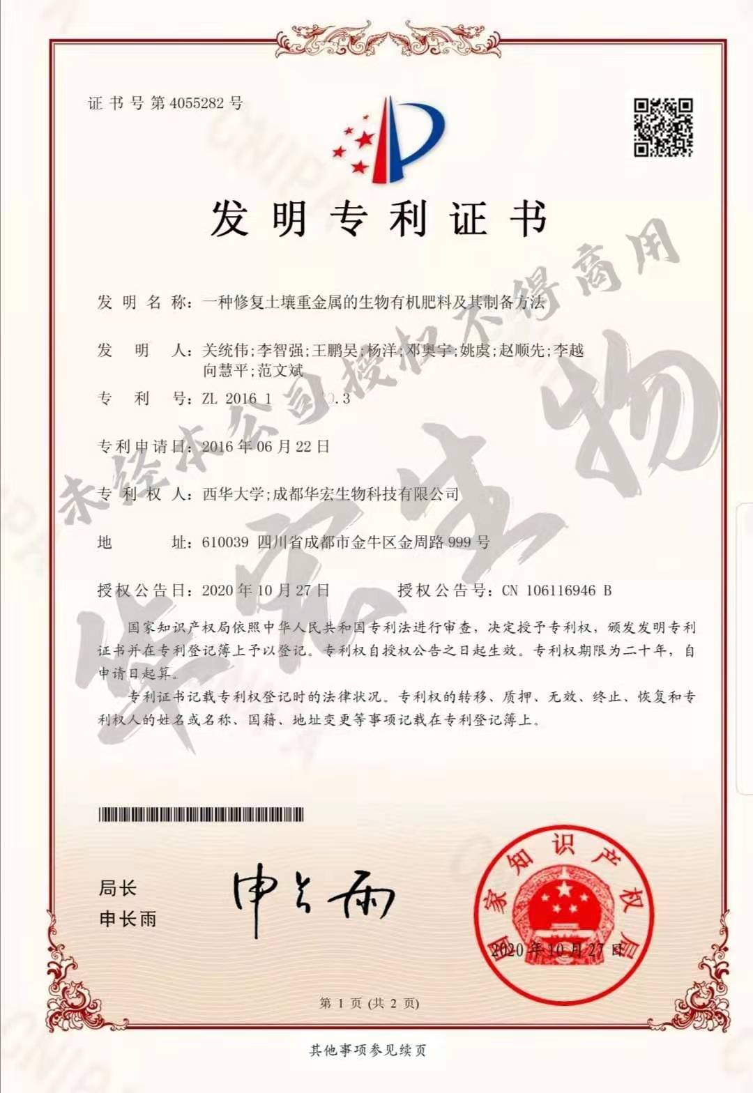 γ-聚谷氨酸源泥土调度剂研造与利用评价证书